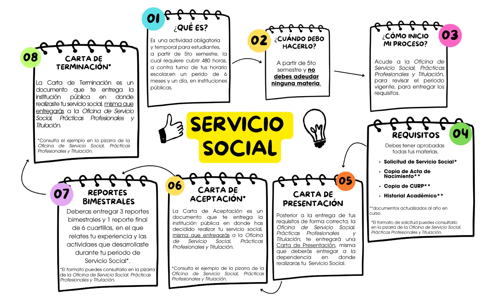 480 horas en un periodo mínimo de 6 meses y 1 día. Es obligatorio para obtener el certificado de bachillerato, así como para el trámite de título y cédula profesional.